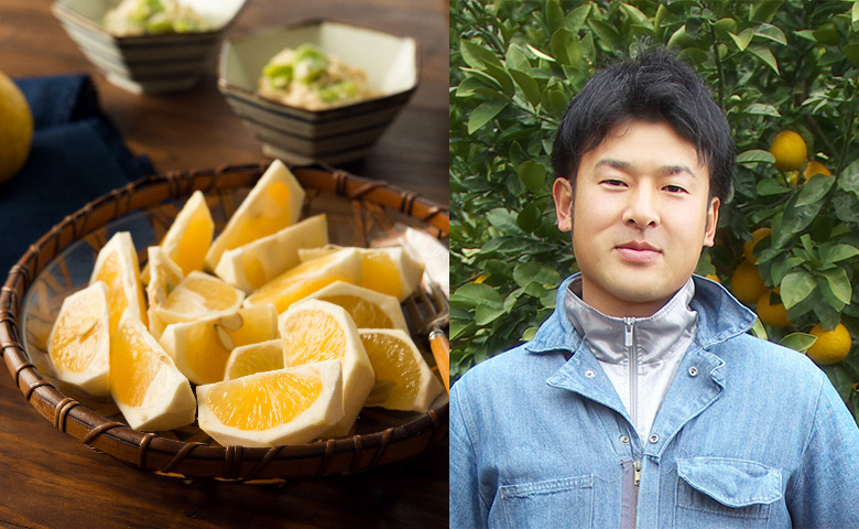 在不知火海的海風吹拂下的梯田中,精通20多種柑橘的年輕柑橘名人野村先生悉心培育的自豪傑作。使用獨特肥料,將果汁提煉至極致,具有如同喝過檸檬汽水般的爽快酸味和華麗香氣。小巧的果實中凝聚了驚人的水潤感。雖然果皮稍硬,但可以用手剝皮直接輕鬆享用,這也是令人開心的特點。如果感覺酸味較強,可在雪櫃的蔬菜室中放置數日,便能享受到更有層次、更溫和的味道變化。