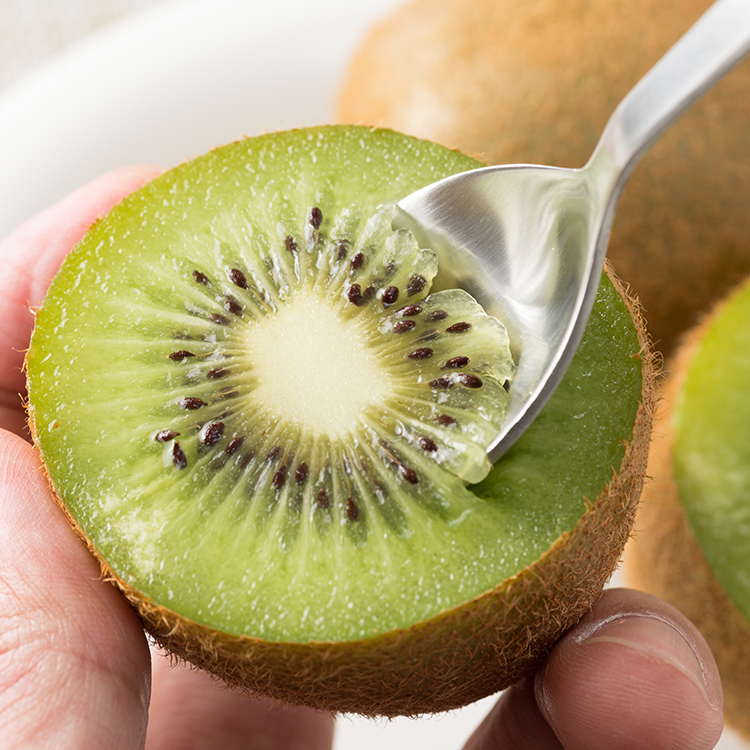 生產者森田先生遠赴奇異果的故鄉紐西蘭磨練技術,仔細觀察果園的特性,調整至「就是現在!」的最佳熟度狀態為您送上。果肉呈現美麗的淡綠至黃綠色,以強烈的甜味為傲。就算是不喜歡酸奇異果的人也一定會愛上。食用前在雪櫃稍微冷藏一下,直接用匙羹挖來吃最合適!與香蕉等一起放入攪拌機打成超甜水果汁也很推薦!