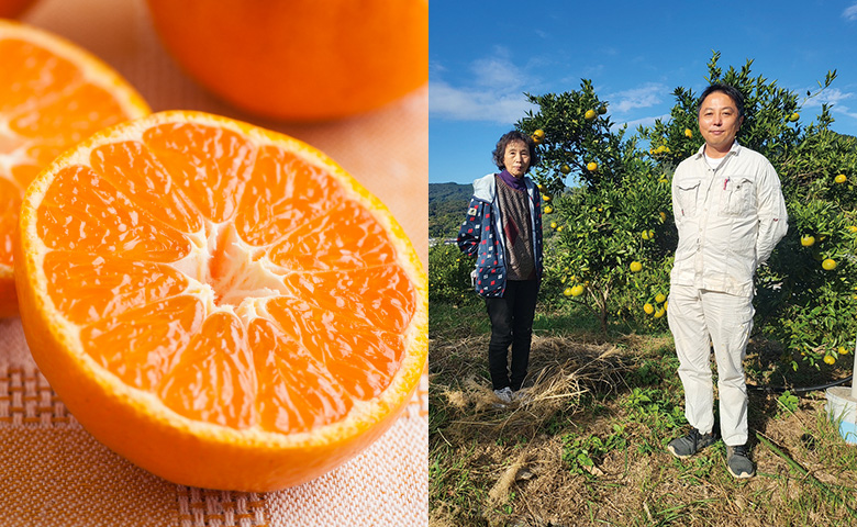 在俯瞰熊本不知火海的高台上,江戶時代延續至今的傳統守護者——鶴田先生。50多年前便率先引入有機農業,持續追求美味與安全。其美味的秘密在於經過多年研究而達到的獨特「完熟有機堆肥」。在微生物豐富生息的土壤中培育的「美早」,外皮呈現鮮豔美麗的橙色,擁有驚人的甜味、深厚的濃郁口感,以及清爽的芳香。酸味溫和易於食用,用手輕鬆剝皮也是其魅力所在。果皮上的傷痕正是充分沐浴陽光的證明。請品嚐這位名人傾注人生心血培育的豐富味道。