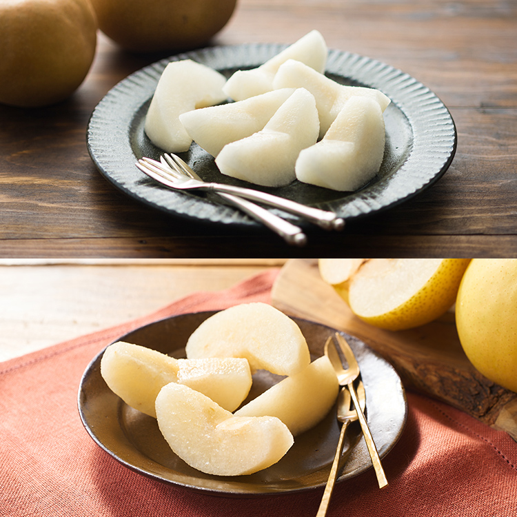 這款代表秋日美味的梨子,由於儲藏性高,能長時間享受也是其魅力之一。享用前,請以自來水輕輕沖洗表面髒污。請務必品嚐這份當季奢華的美味。