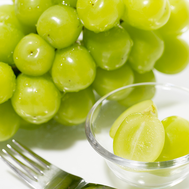 運用勝沼晝夜溫差大的氣候優勢,培育出香氣豐富、甜味十足的葡萄。生產者逐串判斷成熟度進行採收,讓您能品嚐到最佳狀態的葡萄。