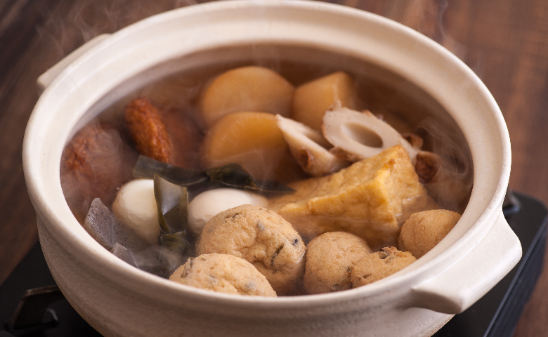 寒冷的季節裡,一碗熱騰騰的「關東煮」最能溫暖人心。高湯滲透進各種食材,湯香濃郁卻不膩口,是日本家庭與居酒屋中最具代表性的冬日料理。製作方法亦十分簡單,只要在煮好的高湯中加入醬油、味醂、清酒、鹽調味。先放入白蘿蔔、蒟蒻等難煮入味的食材,小火煮約30分鐘,再加入魚丸、豆腐、雞蛋等,續煮20~30分鐘。