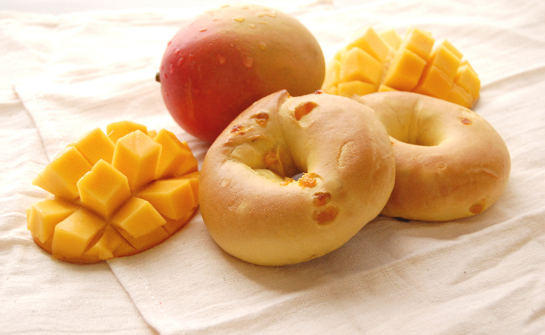 香港首次登場的芒果椰香Bagel,打開包裝即散發淡雅椰香,一口咬下,濃縮乾燥芒果的天然甜味於舌尖綻放,配合柔韌Q彈的麵糰,彷彿置身南國海風之中。另一款原味貝果則以日本國產小麥製成,麥香濃郁,嚼勁十足,帶出樸實自然的甜味。建議先原味品嚐兩種風格的差異,再以創意搭配享用——原味可作三文治底、芒果椰香配上忌廉芝士更添甜品風情。