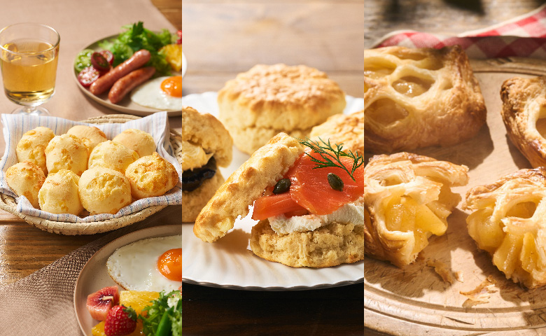 精選三款人氣烘焙作品,為日常早餐與下午茶時光增添一份從容與格調。包含:以北海道產芝士製作、香濃柔韌的Q彈芝士球;只需將冷凍狀態直接放入焗爐,即可享受酸甜國產蘋果餡與酥脆層次兼備的即焗蘋果批;以及承襲英式經典工藝、牛油香氣馥郁的傳統英式鬆餅。