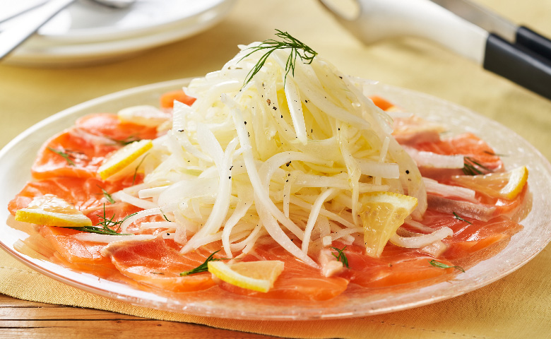 熊本縣得天獨厚的火山灰土壤和溫和氣候,培育出這款口感溫順的優質洋蔥。與普通洋蔥相比,鹽玉洋蔥的辛辣味極少,取而代之的是自然的甘甜,即使生食也不會有嗆鼻的刺激感,非常適合不喜歡洋蔥辛味的人士。