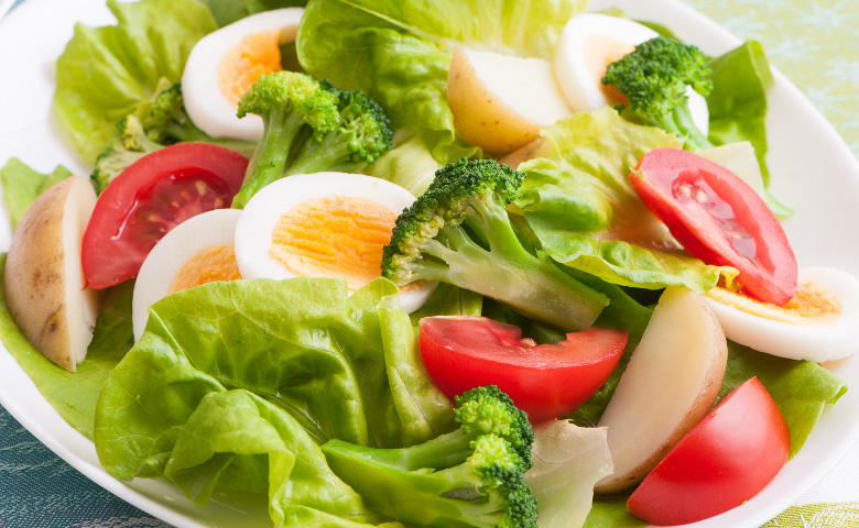 步驟4. 將米飯裝入模具盛在盤子上,配上番茄燉煮和生菜沙律即可完成。