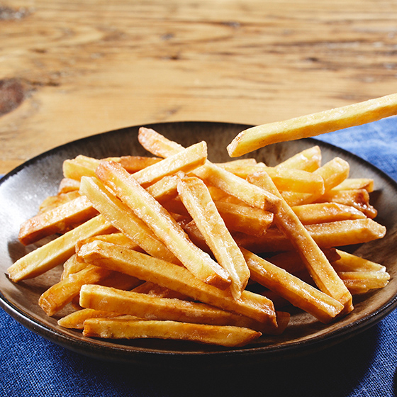 蒸熟後做成薯條。當然很美味。如果要保持外觀的話,可能只是蒸熟會比較好。一邊品嚐各種不同品種的薯仔,一邊與孩子討論「這是什麼品種呢?為什麼薯仔是紫色的呢?」等問題一起享用。一邊想像著從安第斯山脈傳來的薯仔原種,一邊品嚐真是很有趣呢。