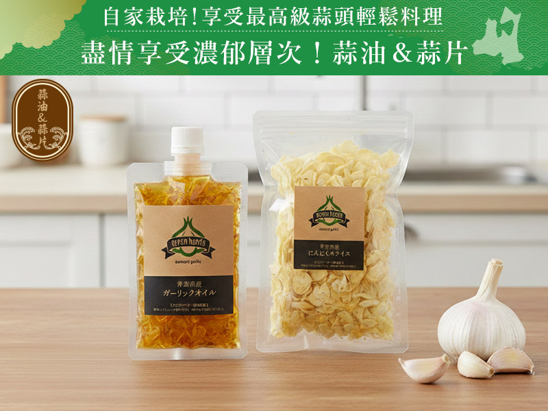 包括一滴定勝負!美味瞬間爆發的「蒜頭油」,釋放大自然豐饒大地的力量。肉類魚類鮮味無限放大的「蒜頭片」震撼味蕾。甘甜回味無窮、健康管理武器的「熟成黑蒜頭」。