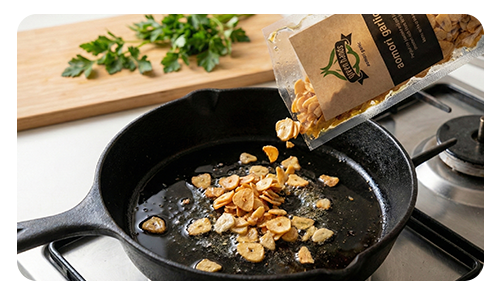 蒜片香味不會過於濃烈,完美蒜香×烘烤焦香的黃金比例,不會搶奪料理風頭,反而為料理帶來更深層濃郁的美味層次。不僅適合肉類、麵食、炒飯,搭配生魚片也非常推薦!