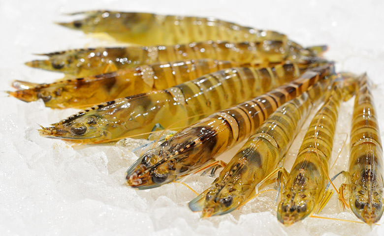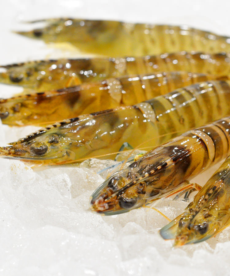 把在捕獲後仍然非常生猛的虎蝦放在冰上並活締後真空包裝,在−30度的溫度下瞬間凍結。以低密度並無使用任何藥品地養育的車海老。在享用時能夠品嚐到最為當造的鮮味,令人難以置信為冷凍蝦肉的品質。推薦可做成刺身、天婦羅或SYABUSYABU等料理。