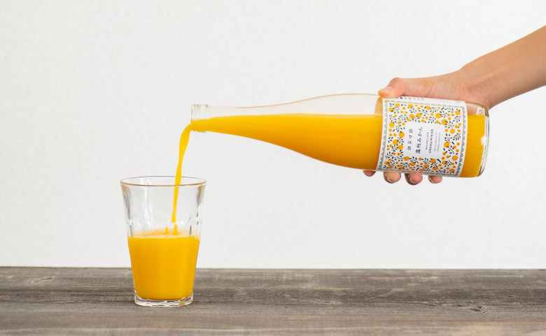 選用了秋濱町的當造蜜柑鮮榨而成, 唯一的成份就是蜜柑, 沒有添加任何香料或防腐劑。可以品嚐到蜜柑水果最原本的風味。溫州蜜柑汁的誘人甜度令人心醉, 酸味較低,十分易入口。建議冷藏後享用。 另外可以用作製作甜品的材料,或加入適量清酒調成果汁酒。