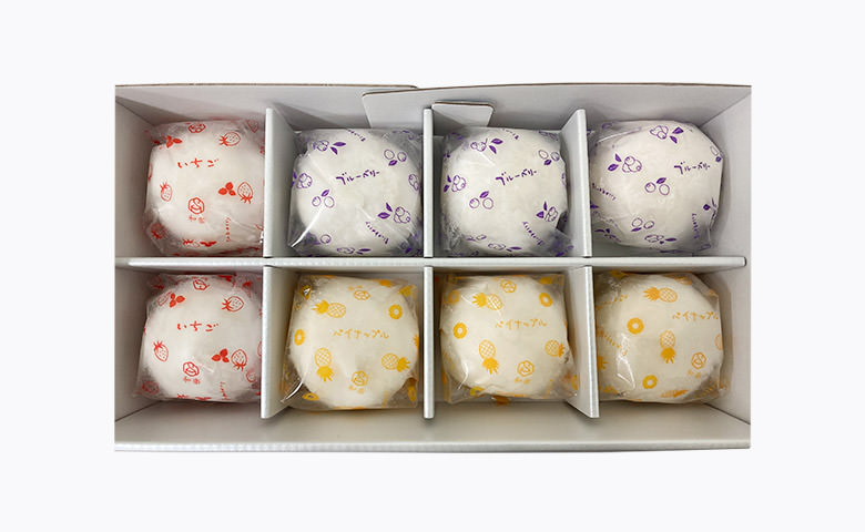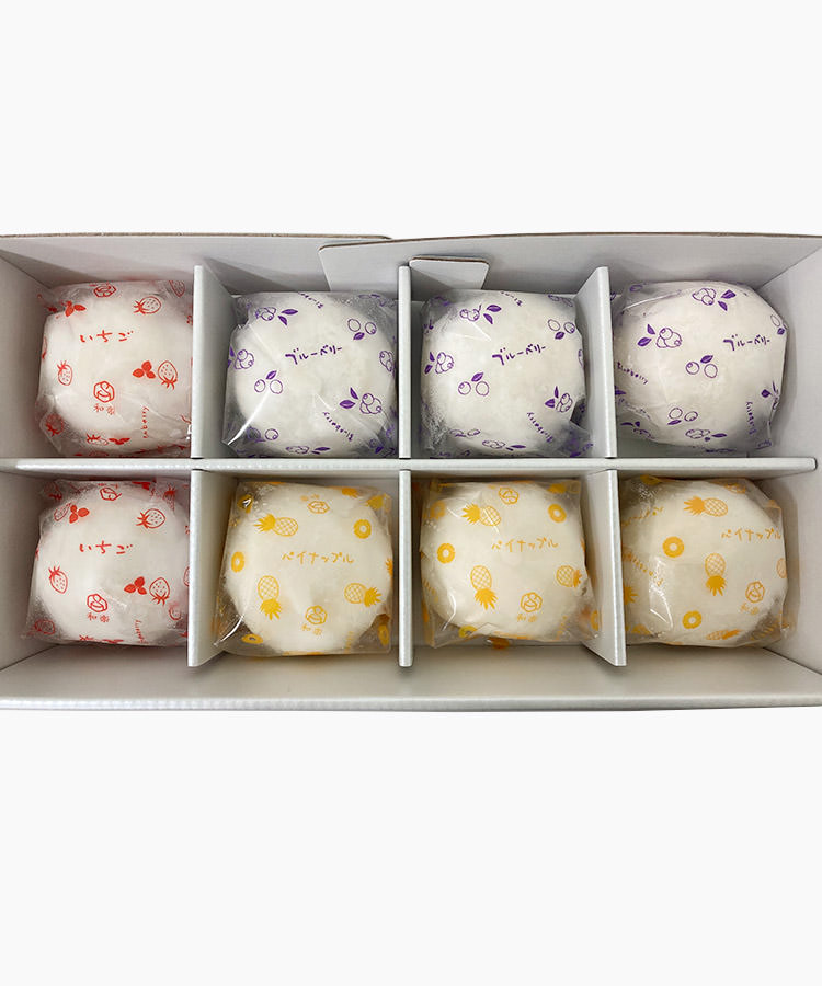 一盒八個,無論是作爲聚餐的飯後甜品還是拜年禮盒都適合。栃乙女士多啤梨、藍莓、菠蘿配上北海道產乳脂比例47%的濃厚的純生忌廉與鮮忌廉攪拌,並以求肥包裹。生忌廉和水果的香氣與酸味配合得天衣無縫,加上大福外皮的平衡,編織出與別不同的滋味。半解凍可以感受如同雪糕一樣的口感,完全解凍則可以享受入口即溶的絲滑美味。