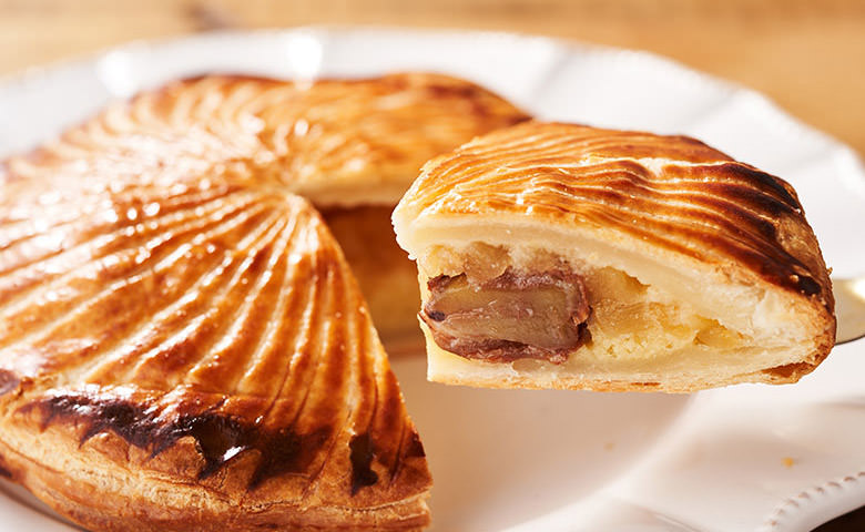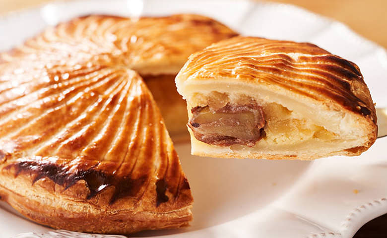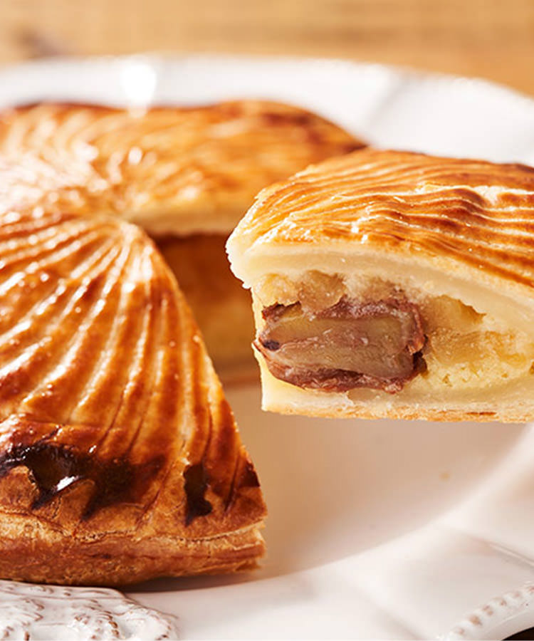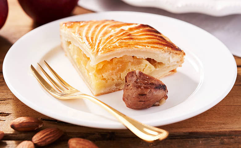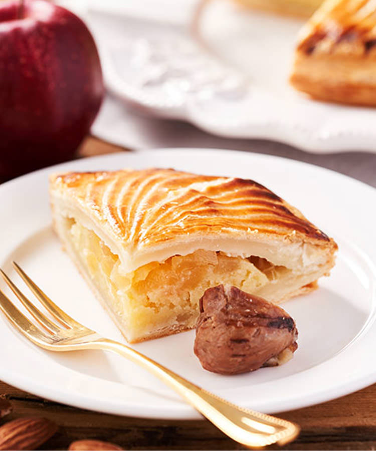 奢侈的使用大量牛油製作餅皮,再包入杏仁Cream和蘋果,酥脆的撻皮配上濕潤的內餡,是十分濃厚的法式甜品。我們用栗子取代了陶瓷玩具,食到栗子的人將是未來一年的幸運兒!家中聚餐必備的好味又好玩的賀年甜品,請務必一試!