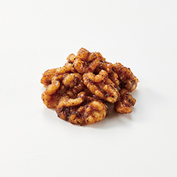 將核桃放入烤箱中烘烤增香,然後用醬油汁和鰹魚碎拌勻而成。