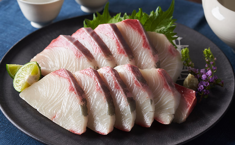鰤魚片使用味噌醬和鹽麹醃製,最後塗上味醂醬油。