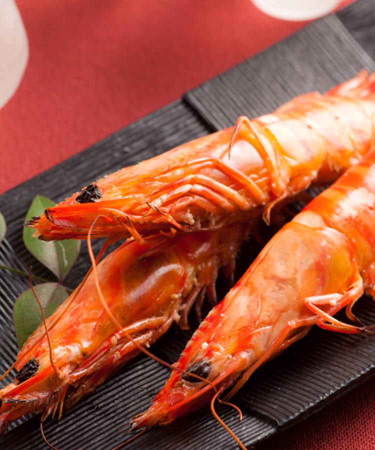 大蝦因背彎、鬚長,被認為是長壽的好兆頭。這道菜是日式炆煮大蝦,肉質十分鮮美。