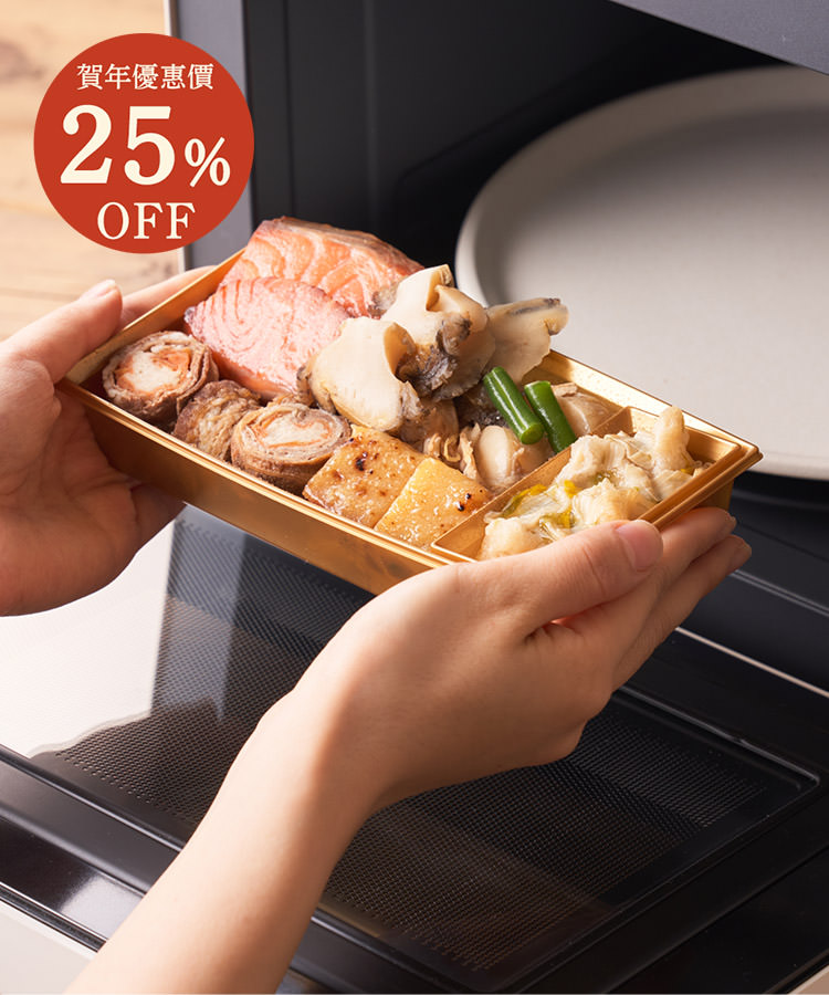 本年Oisix所全新設計的日本過年必備的御節料理,兩層共有21款菜式,款款都有特別的寓意。吃過美味及意頭吉利的御節料理,讓新一年可更豐盛,一次過滿足您多個新年願望!與去年一樣,一部分商品可以加熱享用,將金色容器從木盒中取出即可加熱,不過要注意時間不可過長呀!