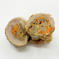 雞肉和胡蘿蔔切碎調味,以牛肉卷起後,浸泡在特製的醬油中,重複烤兩遍製成。
