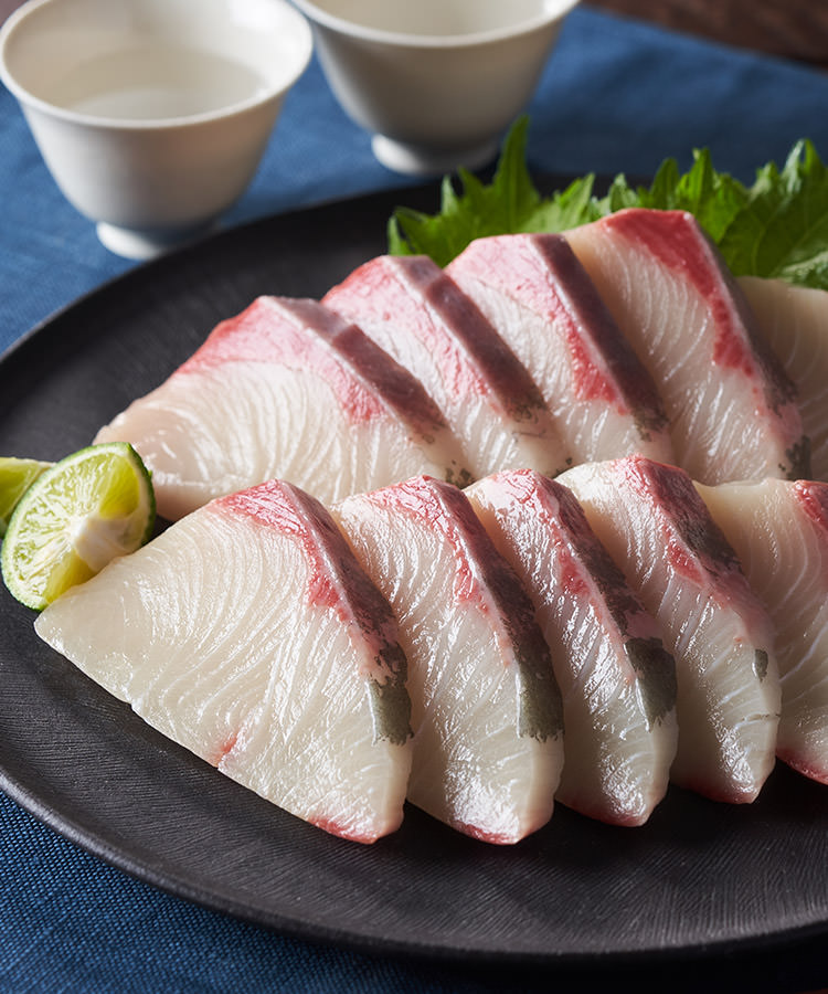 由於口腔部分呈黑色,而被稱為喉黑的赤鯥魚片炸一次後,在日式鰹魚高湯中煮熟,配上加上菊花的腐竹醬汁享用。
