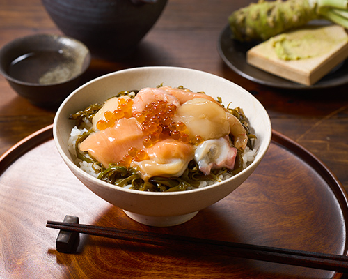 - 精選三陸產裙帶菜、三文魚、月牙螺、甜蝦、帆立貝、章魚、三文魚籽等7種珍貴海鮮,讓您一次品嚐豐富美味!