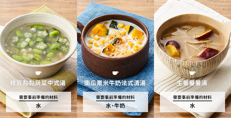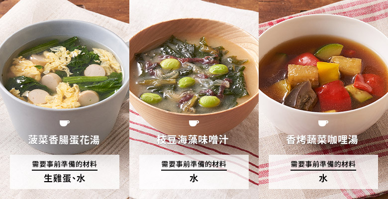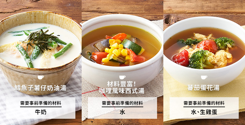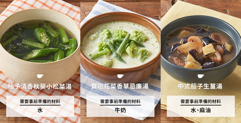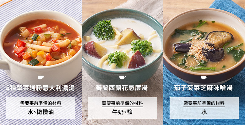 參考過往收集的客戶問卷調查,將不會提供大部分家庭所持有的調味料。具體而言,「無需切菜餸菜Kit」只需準備油、醋、日本醬油、鹽、胡椒等基本調味料,而「無需切菜湯品Kit」則需要準備製作湯品時用到的水或牛奶。「多加一步餸菜Kit」部分餐單則可能需要準備米飯。詳細請參閱有關商品的詳細頁面。