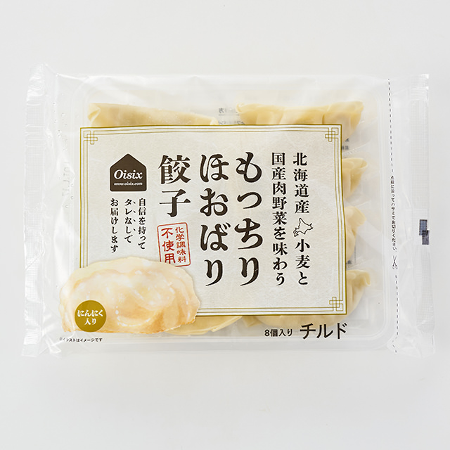 大大粒8隻冷藏餃子,以椰菜、豬肉、雞肉作餡料,再以糖、醬油、鹽等簡單調味,製成風味十足Juicy美味餃子,Oisix最具人氣小菜之一!