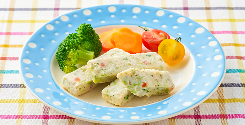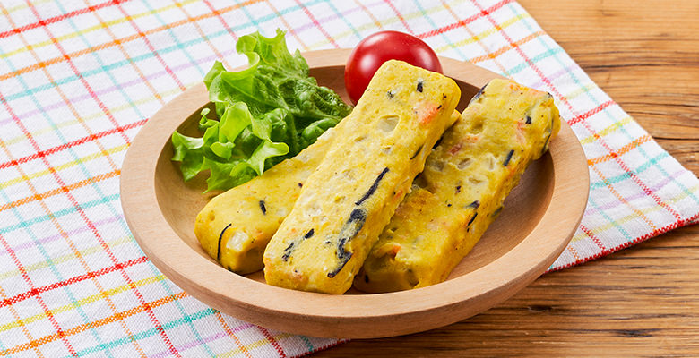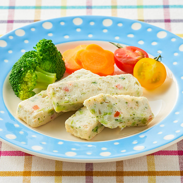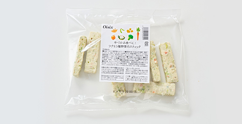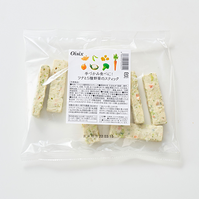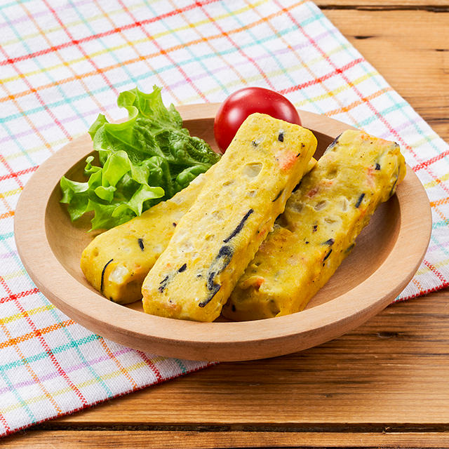 鹽分低且能攝取蔬菜成份的簡易小吃。在吞拿魚、豆腐、雞肉的麵團中加入洋蔥、枝豆、紅蘿蔔、西蘭花、馬鈴薯5種蔬菜混合製成的冷凍蔬菜棒,沒有使用加工澱粉,以微波爐簡單加熱即可食用。