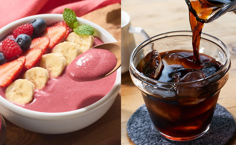 紅菜頭奶昔則以甜菜根、香蕉與豆漿調和天然果香,再添上覆盆子的果酸點綴,無需砂糖,也能感受到豐富層次的天然甜味。輕鬆解凍即可飲用,或搭配優格、水果變身健康甜點碗,營養又滿足。
