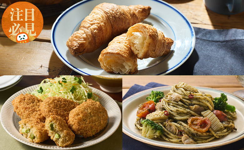 無須解凍即可烘烤的鬆軟牛角包,香氣撲鼻、層層酥香也能輕鬆享受暖心美味;只要用微波加熱即食的茶豆雪室馬鈴薯可樂餅,滿口幸福滋味;還有滿載有明海苔與蒜香辣味的微波意粉,只需幾分鐘,就能品嚐濃郁風味的簡單豐盛餐點。