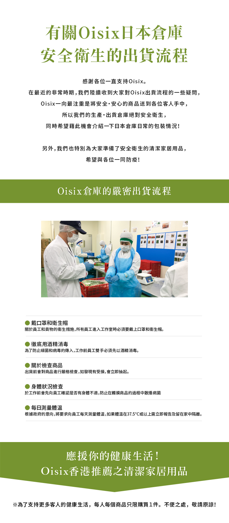 - 有關Oisix日本倉庫安全衛生的出貨流程(16/7更新)