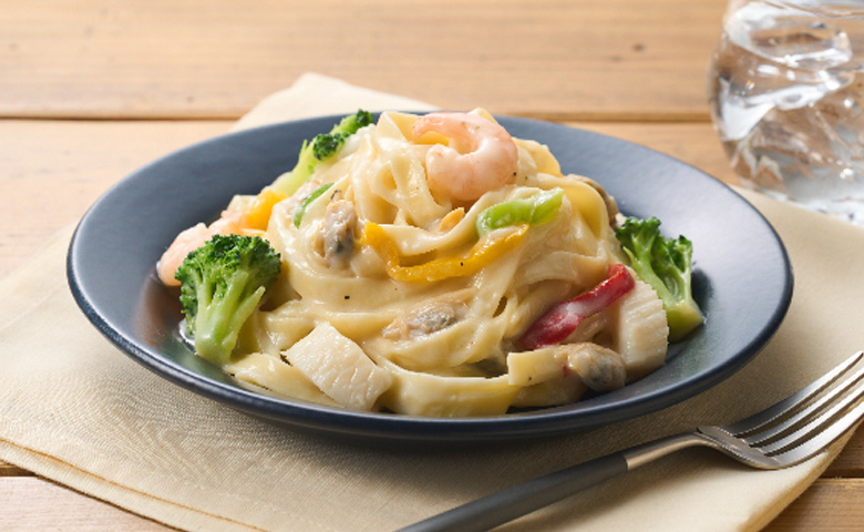 海鮮控必試!特選蝦仁、大蜆、鮮魷三種配料,讓每一口都充滿海洋鮮味。配合香濃芝士醬與滑順白汁,味道醇厚豐富,最適合家中小朋友。同樣選用100%杜蘭小麥,經5段滾輪壓延製成,微波後依然保持極致煙韌彈牙。日本職人工藝,叮一叮即食,在家重現餐廳級星級美味!