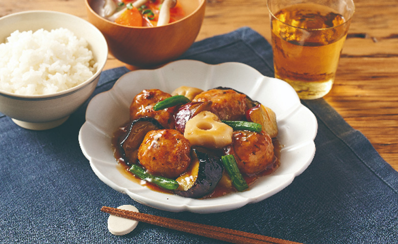 日本家常風味!選用日本產雞肉,加入鮮香紫蘇葉、大蔥及生薑,製成香嫩惹味的雞肉丸。搭配茄子、四季豆及番薯等繽紛野菜,營養均衡且色彩誘人。微甜照燒汁令人胃口大開,每一口都散發溫暖療癒的懷舊味道。無論作為主菜或便當配菜,都係完美選擇!
