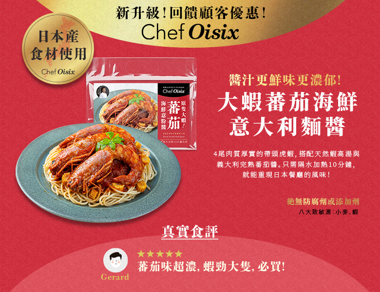 Chef Oisix 大蝦海鮮蕃茄意大利麵醬(2人份)