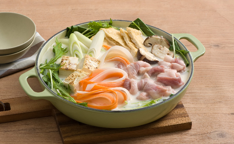 嚴選日本國產素材調配而成的豆乳火鍋套裝,以醇厚豆乳結合昆布高湯,風味細膩而層次豐富,與蔬菜、菇類及肉類皆極為相配,呈現溫和而深邃的滋味。湯底做法非常簡,將豆乳與和風高湯倒入鍋中,以中火加熱。豆乳需注意避免沸騰,以免產生凝固。加入味噌、醬油與料理酒,充分攪拌至味噌完全溶解。依個人口味以少量食鹽調整濃度。