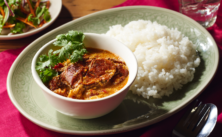 只需加入雞蛋、放入微波爐加熱,即可完成正宗泰式名菜——蟹肉滑蛋咖喱。香濃的咖喱醬以魚露與蠔油提鮮,加入多種泰國香草與香料慢煮,層次豐富、香氣四溢。嚴選可連殼食用的小蟹,肉質鮮嫩飽滿,搭配柔滑的蛋香與微辣醬汁,讓人一口接一口停不下來。
