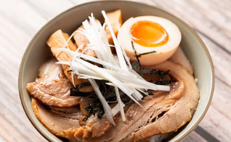 "白飯上鋪滿香噴噴的細切叉燒,淋上少許叉燒汁,再加上大量蔥絲與溫泉蛋或半熟蛋黃。輕輕攪拌後,叉燒的鹹香與蛋黃的濃郁融合成一體,瞬間化身成為居酒屋級「蔥花叉燒丼」。
