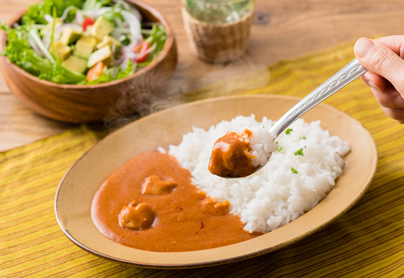 將印度經典美味以更親切的方式呈現於日本餐桌。嚴選國產雞肉,搭配慢火炒香的洋蔥與番茄為基底,加入國產牛油與鮮奶油,濃郁滑順之中帶出層次豐富的香氣。以菜籽油釋放香料風味,簡單卻不失深度的調味,使其兼具家庭親和力與專業級咖喱的深邃滋味。無論大人小朋友,都能在餐桌上一同享受這份帶有本格風味的濃厚咖喱。