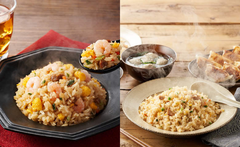 一次過嚐盡兩款風味各異的日本炒飯!「蝦仁雞蛋黑豚炒飯」選用霧島黑豚叉燒切粒,配合小蝦、雞蛋、胡蘿蔔及蔥花,色彩繽紛,口感豐富。調味以蠔油、扇貝精華及麻油帶出正宗中華風味。另一款「直火煮豚蛋炒飯」則以日本國產豬腿肉製成的煮豚為主角,搭配洋蔥、胡蘿蔔、蔥等國產蔬菜,直火翻炒至粒粒分明,清爽溫和的口味深受小朋友喜愛。