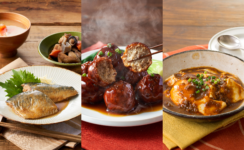 每日餐桌的好幫手!「人氣熟食盛合」一次集合三款最受歡迎的日式即食料理。香辣帶勁的「四川風花椒麻婆豆腐」,麻辣鮮香下飯一流;加入蓮藕粒、口感更豐富的「黑醋肉丸」,以湯煮方式輕鬆加熱即可享用;還有去骨處理過、入口鬆嫩多汁的「鯖魚蘿蔔泥煮」,酸香清爽又健康。全部只需簡單加熱即可上桌,無論平日正餐、加餸,還是忙碌日子的速食方案,皆能為餐桌增添豐富滋味。