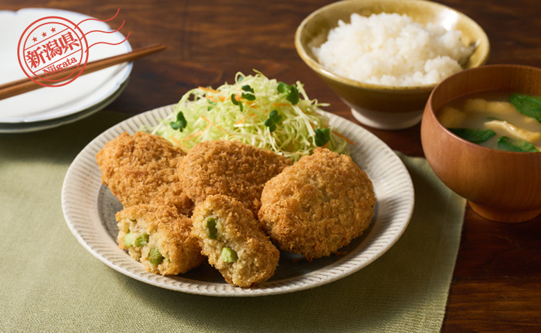 嚴選儲存於天然雪櫃「雪室」熟成的雪室薯仔,糖度經低溫轉化提升達 3 倍之多!薯泥口感極致綿密滑溜,配上滋味豐富的雞肉碎,並大膽加入新潟特產茶豆,帶來顆粒感與陣陣豆香。我們更巧妙加入七味粉作隱藏調味,令整體層次瞬間提升。只需使用微波爐或焗爐簡單加熱,即可品嚐這款外脆內軟、集甘甜與豆香於一身的新潟特色美食。