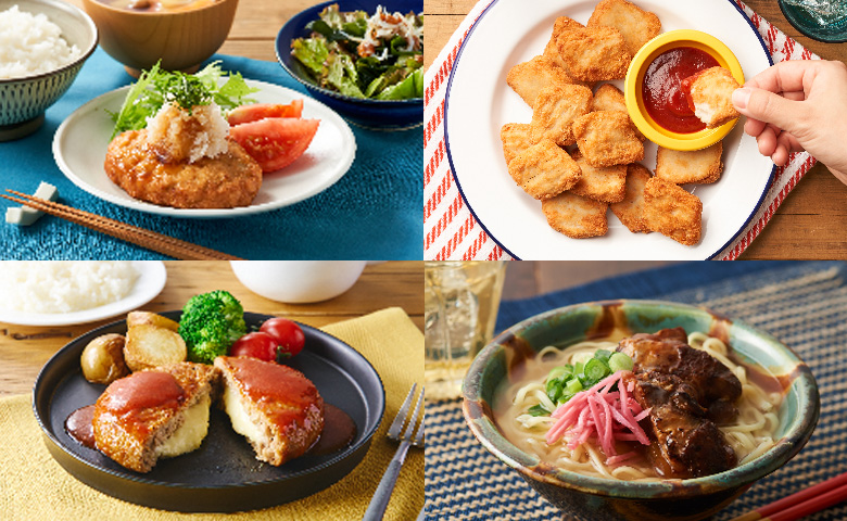 我們準備了份量十足的漢堡扒、深受兒童喜愛的雞塊、健康的豆腐漢堡扒,以及推薦作為成年人下酒菜或配餐點綴的多款肉類料理,品種豐富。請從中任選 3 款心水產品!